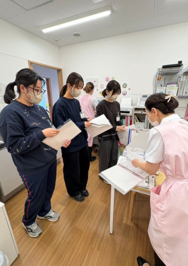 ~Aさん~ デイケアの見学をした際、様々な事情により投稿が難しくなってしまった子どもたちにとっての「居場所」であると感じました。私が見学に入ったことで少し緊張感が生まれてしまったように感じましたが、時間が経つにつれて子どもたちが生き生きと遊んでいる姿を見ることができました。 病児保育についてはもともと関心がありましたが、1対1で関わることができるという利点がある一方で、子どもたちの細かな体調の変化や気持ちに寄り添うために、さらに丁寧な観察と臨機応変に対応する力が求められる場であると学びました。 貴重な体験をさせていただき、ありがとうございました。~Bさん~ 最初は何を話しかけていいかわからず「どうしよう」と思っていましたが、子どもたちに声をかけてみると優しく答えてくれて、遊びをしているうちに仲良くなることができました。 院長先生と直接お話をさせていただきました。今回の見学実習に参加したことで、私の夢の道が広がりました。ありがとうございました。~Cさん~ 今回の実習で病児保育、ST(言語聴覚療法)、OT(作業療法)、デイケアと順に回らせていただきました。各現場では看護師や保育士の皆さんが療育の特徴や子どもたちの状態について詳しく教えてくださり、大変勉強になりました。 保護者の方のご協力のもと、実際の診察に同席してお話を伺ったり、生後3か月の乳児の予防接種を見学させていただきました。貴重な機会をいただき、大変感謝しております。 病児保育や療育について「自分の目で見てみたい」と思い、今回実習に参加しました。普段は見ることのできない診察や現場の様子を間近で拝見し、非常に多くのことを学ぶことができました。今回得た学びを、これからの実習や授業に活かしていきたいと思います。お忙しい中、実習を受け入れていただき、本当にありがとうございました。